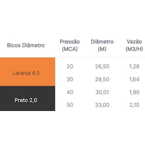 Pressão de : para informações dobre pressão e vazão consultar a tabela nas imagens do produto.