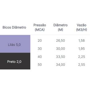 Pressão de : para informações dobre pressão e vazão consultar a tabela nas imagens do produto.