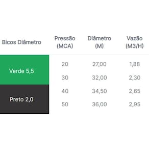 Pressão de : para informações dobre pressão e vazão consultar a tabela nas imagens do produto.