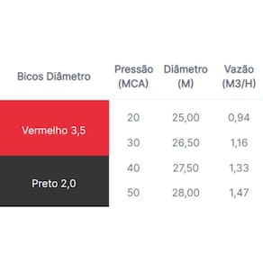 Pressão de : para informações dobre pressão e vazão consultar a tabela nas imagens do produto.