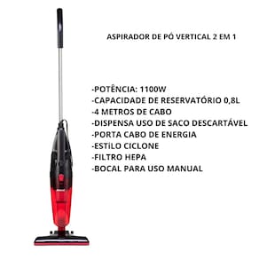 - 2 em 1 - Capacidade de reservatório de 0,8 Litros - Dispensa uso de saco descartável - 1100W de Potência - Porta Cabo de Energia - Filtro HEPA, - 2 em 1 - Capacidade de reservatório de 0,8 Litros - Dispensa uso de saco descartável - 1100W de Potência - Porta Cabo de Energia - Filtro HEPATipo de coletor