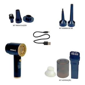 Aspirador multifuncional que aspira, sopra e infla. Ideal para remover migalhas, pelos de pets, poeira em teclados e encher infláveis. Design ergonômico e leve.Tipo de coletor