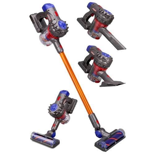 ?Várias maneiras de brincar?As crianças podem usá-lo como aspirador de pó, aspirador portátil ou aspirador de escada para atender às várias necessidades de limpeza. Existem três bicos diferentes para as crianças trocarem.