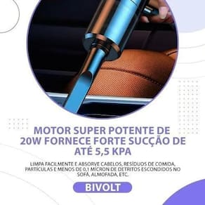 Aspirador De Carro Portátil Potente Recarregável - Preto