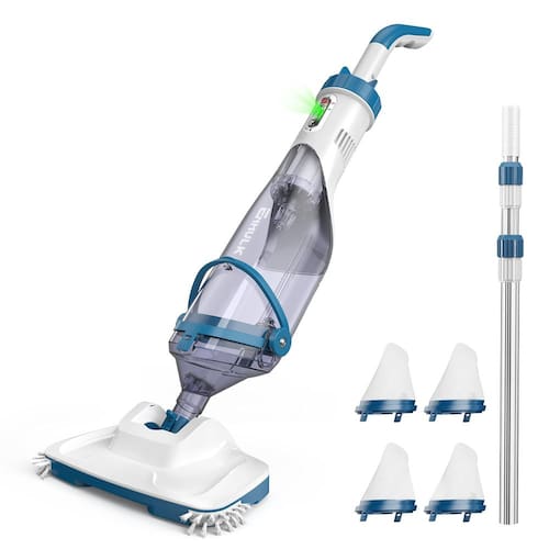 - ?Com haste telescópica de 2,22 cm?Este aspirador de piscina recarregável vem com uma alça curta e um mastro telescópico. Você pode trabalhar de uma maneira mais apropriada. O mastro telescópico se estende de 91 cm a 222 cm, facilitando a limpeza até mesmo nas áreas mais difíceis de alcançar
