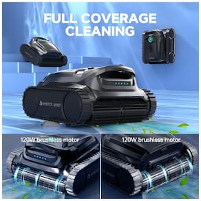 Desfrute de um tempo de funcionamento prolongado com o aspirador de piscina, que possui uma bateria de 10.000mAh, proporcionando até 300 minutos de limpeza contínua. Equipado com um motor sem escovas de 120W, este aspirador tem sucção potente para capturar detritos e sujeira do fundo e paredes da piscina. Controle a limpeza e a direção remotamente pelo aplicativo, cobrindo até 400m² em uma única carga. Com 7 modos de limpeza e 6 rotas eficientes, garante uma piscina impecável. O sistema de filtragem dupla mantém a água cristalina.