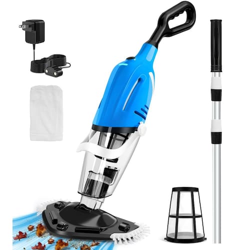 - Configuração e uso sem esforço: montagem sem ferramentas em minutos — sem necessidade de experiência! Quando terminar a limpeza, basta enxaguar com água para limpeza rápida e baixa manutenção. Nosso limpador de piscina também vem com alças curtas e longas para lidar com banheiras de hidromassagem ou piscinas profundas com facilidade. Nosso aspirador de pó de piscina se estende até 1,5 m, alcançando sem esforço o chão da piscina para que você não precise se curvar. O design anti-refluxo da saída de drenagem garante que os detritos não voltem para a piscina após a limpeza.