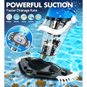 Transforme sua rotina de manutenção de piscina com este poderoso aspirador de pó sem fio. Com um impressionante tempo de funcionamento de 80 minutos e conveniente capacidade de carregamento rápido de 1,5 hora, esta ferramenta de limpeza versátil é perfeita para todos os tipos de piscinas, spas e banheiras de hidromassagem. O aspirador possui uma altura mínima de trabalho de 40 cm, tornando-o ideal para piscinas acima do solo e no solo. Seu design portátil oferece manobrabilidade superior, permitindo que você alcance facilmente cantos e remova detritos das superfícies da piscina. A elegante caixa azul abriga componentes de filtragem eficientes que prendem sujeira e detritos enquanto você limpa. A operação sem fio elimina o incômodo de gerenciar os cabos durante a limpeza, proporcionando movimento irrestrito ao redor da área da piscina. Este aspirador de piscina vem com um acessório de escova para melhorar o desempenho de limpeza, ajudando você a manter a água cristalina com o mínimo de esforço. Se você estiver lidando com folhas, areia ou detritos gerais, este aspirador de piscina foi projetado para tornar a manutenção da piscina mais simples e eficiente.