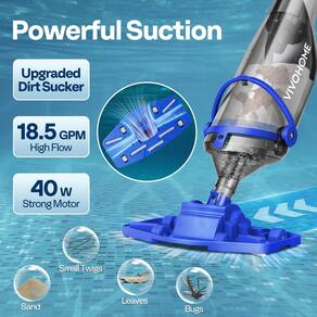 - SUCÇÃO PODEROSA: O motor de 40 W fornece uma forte sucção de 18,5 GPM, removendo facilmente areia, pequenas pedras, galhos e folhas da piscina;: Lodo pesado ou algas podem entupir o filtro e acionar a proteção contra sobrecarga do motor. Isso fará com que.