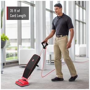O aspirador vertical Hoover Commercial Prime Lite é um equipamento de alto desempenho, ideal para uso comercial. Com design versátil, ele se adapta facilmente a diferentes tipos de ambientes e superfícies, incluindo carpete, madeira, laminado e azulejo. Com largura de 30 cm, ele é capaz de cobrir uma área ampla. O aspirador é leve, pesando cerca de 4,08 quilos, o que facilita seu transporte entre as salas e até mesmo em escadas. Além disso, ele possui cabo com comprimento de 10,64 metros, proporcionando maior liberdade de movimento durante a limpeza. Outro diferencial é o selo de fechamento automático Saniseal, que garante praticidade na hora de descartar os resíduos. O design de baixo perfil permite que o aspirador alcance áreas difíceis, como embaixo de móveis. Para maior conforto do usuário, o equipamento conta com um puxador de mão auxiliar, evitando esforços desnecessários e torções no pulso.