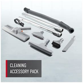 Componentes incluídos escova para pó, bocal para piso de tapete, alça de ombro, escova para piso de parede, bocal para móveis, alça de armazenamento de cabo, 2 varinhas cromadas, ferramenta para fendas