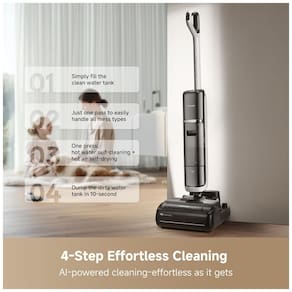 Desfrute de uma limpeza profunda e eficaz com o sistema de limpeza de chão com água quente fresca a 185F, aquecendo a escova a 131F para remover sujeiras com água aquecida. O DREAME H15 Pro Heat possui saídas de água únicas para enxaguar a escova em 360 graus, evitando emaranhados graças ao raspador TangleCut. Com cobertura TripleEdge, alcança cantos e bordas facilmente. O braço robótico AI com tecnologia GapFree alcança áreas apertadas, enquanto a sucção de 22KPa e o modo de auto limpeza garantem uma limpeza completa. Além disso, o sistema de detecção RGB adapta-se automaticamente aos níveis de sujeira, otimizando a limpeza.