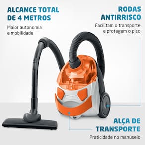 ALCANCE TOTAL DE 4 METROS: Maior autonomia e mobilidade para limpeza de todos os cantos da sua casa.