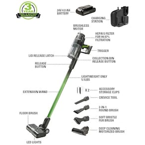 Conheça o Aspirador Vertical Sem Fio Greenworks 24V Deluxe Brushless (500W), uma ferramenta de limpeza inovadora que une eficiência e tecnologia moderna. Este aspirador vem equipado com: