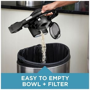 Esvaziar o aspirador é fácil com a tigela translúcida de fácil esvaziamento e o filtro lavável, proporcionando praticidade e economia.