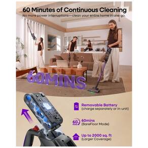 Experimente a potência do aspirador de pó sem fio AlloyMove A03, equipado com um motor sem escovas de alta qualidade de 450W, proporcionando uma sucção poderosa de 45kPa. Este aspirador enfrenta facilmente a poeira profunda do chão, detritos teimosos de tapetes e pelos de animais escondidos. Com três níveis de sucção ajustáveis, você economiza energia na limpeza diária e pode alternar para alta potência para uma limpeza profunda eficiente. O copo de poeira de 1L elimina a necessidade de esvaziamento frequente, e a função de esvaziamento com um toque torna a limpeza uma brisa, garantindo eficiência. Desfrute da conveniência e eficiência que este aspirador traz para sua rotina diária de limpeza! Até 60 minutos de autonomia e bateria removível permitem a limpeza sem perder potência. A bateria removível elimina cabos, proporcionando praticidade. O design leve e flexível permite limpar áreas altas e baixas com facilidade, sem a necessidade de se curvar. O sistema de filtragem de alta eficiência captura efetivamente partículas de poeira no ar, liberando ar limpo e garantindo um ambiente saudável. Com luz LED verde avançada, um rolo antienrolamento, múltiplos acessórios e operação simples, a limpeza se torna eficiente e fácil para toda a família!