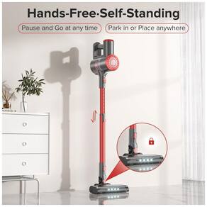 Equipado com um motor de alta velocidade de sucção de 40KPA, este aspirador de pó sem fio proporciona uma excelente potência de sucção. Ideal para azulejos, pisos duros e carpetes, ele remove sujeira, detritos e pelos de animais de várias superfícies. O motor potente autodirigido ajuda a limpar a casa rapidamente, melhorando a eficiência da limpeza. Com um design autoportante, o aspirador oferece uma conveniência incomparável. Com suas mãos livres, você pode lidar com outras tarefas enquanto ele fica em pé com firmeza, em qualquer lugar. Com uma escova em forma de S antienrosco, evita que cabelos e detritos se enrosquem, garantindo uma limpeza suave e ininterrupta. Leve e equilibrado, é fácil de transportar e usar em toda a sua casa. Seu design ergonômico permite limpar áreas elevadas sem esforço, sendo perfeito para operação com uma mão. Além disso, vem com três bocais substituíveis para diferentes necessidades de limpeza. Com tanta praticidade, a limpeza se torna uma tarefa simples e eficiente.