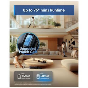 Característica Especial: Design Lay-Flat de 180 graus, Autolimpeza Flashdry a 185°F, Potência de Sucção de 22kPa, Design Anti-Emaranhado DualBlock, Até 75 minutos de Autonomia da Bateria / 50 minutos de Autonomia da Água,