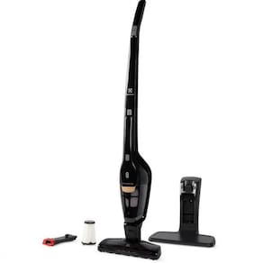 Aspirador 2 em 1 sem fio, bateria de Lithium 14,4V, filtro HEPA, sistema Brush Roll Clean, bocal para cantos e frestas com escova, 2 velocidades, tecnologia Cyclone, bocal pisos com luz LED, tecnologia 180 EasySteer, estacionamento vertical, reservatório para pó de 420ml, tecnologia Bagless com reservatório transparente, base para carregar.Filtro HEPA (filtra até 99,9% das impurezas do ar)