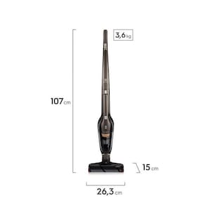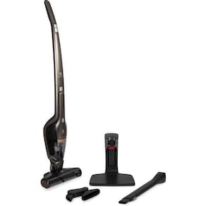 Resumoo Aspirador Vertical de Pó 2 em 1 Sem Fio Ergorapido Bronze ERG27 promove uma limpeza instantânea para pisos frios O aspirador ERG27 oferece grande poder de sucção, gerado por seu bocal PowerPro que limpa desde as menores até as maiores partículas de sujeira, com ele nada fica para trás. Com grande performance de filtragem, o aspirador de pó vertical remove até 99,9% dos ácaros e impurezas do ambiente, o que melhora a qualidade do ar. Autonomia de funcionamento de até 45 minutos, graças à sua bateria de Lithium, o aspirador de pó sem fio Ergorapido garante alto rendimento para uma limpeza eficiente. Limpe sua casa com apenas uma carga de bateria. Além disso, oferece melhor limpeza de cantos e frestas seu bocal selado fica mais próximo ao chão e cria maior fluxo de ar e sucção, para aspirar 6x mais poeira dos cantos e frestas. Com a Tecnologia 180 EasySteer, o Ergorapido gira completamente para os lados, facilitando a limpeza de todos os cantos. O Ergorapido ERG27 dispõe de vários recursos especiais como a unidade de mão, para a limpeza de mesas, sofás e bancos de carro, além de acessórios para a limpeza de locais altos e de difícil acesso. O Aspirador Vertical de Pó ERG27 Electrolux é a melhor compra para quem não abre mão da praticidade na hora da limpeza.