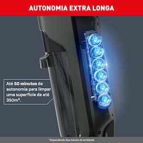 Equipada com um sistema inteligente de detecção, ela ajusta automaticamente a velocidade do rolo e o fluxo de água conforme o nível de sujeira do ambiente, otimizando o uso da bateria e garantindo um resultado impecável. Com até 50 minutos de autonomia e funcionamento sem fio, você tem liberdade total para limpar a casa inteira sem interrupções.