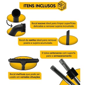 Aspirador De Pó E Líquidos 2400W 60 Litros Apv 2460 220V Vonder DESCRIÇÃO: Sabemos que a limpeza pode ser uma tarefa árdua, especialmente com o acúmulo de poeira e sujeira que afetam nossa qualidade de vida. As soluções tradicionais muitas vezes não são tão eficientes quanto precisamos. O Aspirador de Pó APV 2460 220V da Vonder é a resposta para um ambiente mais limpo e saudável sem o incômodo de limpezas demoradas, todos seus resíduos sumirão em um piscar de olhos BENEFÍCIOS: - Limpeza Poderosa: Com 2400W de potência, este aspirador lida facilmente com poeira e detritos em diversas superfícies; - Função de sucção e sopro; - Filtro HEPA: Alta eficiência e tripla filtragem; - Filtro esponja: Atua como uma barreira para partículas maiores e também ajuda a proteger o motor, evitando que resíduos ou líquidos atinjam componentes sensíveis; - Versatilidade: Aspira sólidos e líquidos e pode ser utilizado para limpeza doméstica em pisos, móveis, veículos e muito mais; - Manuseio Conveniente: Seu design articulado, rodas para mobilidade e tubo prolongador tornam a limpeza fácil e eficiente. CARACTERÍSTICAS: - Alto Desempenho e Eficiência de Aspiração: Equipado com dois potentes motores de 1200W que totalizam 2400W e um vácuo de aproximadamente 21 kPa 210 mbar , o aspirador garante alto poder de sucção, sendo ideal para a remoção eficaz de sujeiras difíceis, incluindo sólidos e líquidos. - Grande Capacidade e Maior Alcance: Com um reservatório de 60 litros, permite maior autonomia sem a necessidade de esvaziamentos constantes. ESPECIFICAÇÃO TÉCNICA: - Modelo: APV 2460 220V; - Tensão V : 220 V; - Frequência: 60 Hz; - Potência do motor: 2400 W dois motores de 1200W cada ; - Capacidade do reservatório: 60 litros; - Comprimento do cordão elétrico do aspirador de pó: 4 metros; - Tipo de aspiração do aspirador de pó: Sólidos, Líquidos; - Vácuo: Aproximadamente 21 kPa - 210 mbar; - Dimensões C x L x A : 485 mm x 495 mm x 850 mm; - Nível de potência sonora LwA : 96 dB A ; - Massa aproximada peso : 13,5 kg. : 12 meses de do fabricante; A NÃO cobre erros de instalação ou MAU uso. CONTEÚDO DA EMBALAGEM: - 1 Aspirador de pó; - 1 Mangueira flexível de sucção; - 2 Tubos extensores; - 1 Bocal cantos; - 1 Bocal escova; - 1 Bocal Multiuso; - 1 Filtro de pano Lavável ; - 2 Rodízios; - 2 Rodas; - 1 Filtro espoja; - 1 Filtro HEPA. No Grupo CarroSomShop PEPE PARTS, entendemos sua paixão por ferramentas. É por isso que nos dedicamos a fornecer os melhores produtos para que você possa construir os melhores projetos. Explore nossa loja e descubra uma variedade de ferramentas que vão desde aspiradores de pó, Inversor de Solda, sopradores, etc até ferramentas de jardinagem. Descubra o que você precisa para elevar seu projeto a um novo patamar Junte-se a nós e experimente o compromisso do Grupo CarroSomShop PEPE PARTS com a qualidade e a satisfação do cliente. Estamos ansiosos para atender às suas necessidades com produtos especializados e atendimento excepcional. Garanta o seu aspirador de Pó APV 2460 220V 2400W agora, e obtenha um novo nível de habilidade com segurança e conforto. Marca: Não Informado