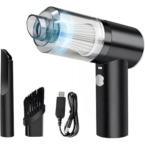 Mini aspirador de pó multifuncional 2 em 1, ideal para limpeza de estofados, locais apertados e de difícil acesso. Absorve diversos tipos de detritos e pelos de animais. Possui filtro lavável e reutilizável.Tipo de coletor
