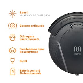 Modelo: Aspirador Robô Eclipse 3 em 1 Varre, Aspira e Passa Pano Autonomia De até 2 Horas 20W Bivolt Multi Home - HO410