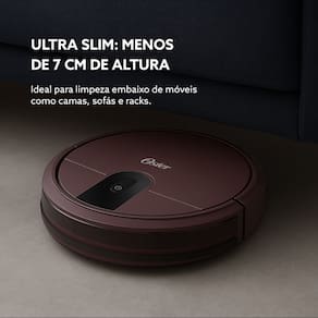 Aspirador Robô Oster Ultra Slim com design ultra slim de menos de 7 cm de altura, alcança até os cantos mais difíceis, passando facilmente sob móveis e sofás. Sistema triplo de escovas para limpeza completa em todos os tipos de piso. Mop integrado com reservatório de água de 240 ml para remover sujeiras difíceis. Carregamento automático, retorna à base quando a bateria está baixa. Autonomia de até 2 horas. Filtro HEPA retém até 99,9% das partículas de poeira. Controle remoto para direcionar manualmente, ajustar sucção, definir horários e modos de limpeza. Sensores antiqueda e anticolisão. Funcionamento silencioso. Ideal para quem tem pets. Reservatório de pó de 380 ml.Tipo de coletor