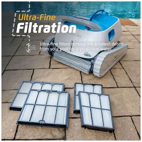 O aspirador robótico de piscina Dolphin Proteus DX4 é a solução ideal para manter sua piscina sempre limpa. Com filtros ultrafinos, ele captura os menores detritos, resultando em água cristalina. O design de carga superior torna o processo de limpeza e remoção de detritos simples e conveniente. O limpador de piscina Dolphin possui recursos poderosos de escalada em paredes para esfregar o chão, as paredes e a linha de água da sua piscina, independentemente do formato ou tipo de superfície da piscina. Com a tecnologia Dolphins PowerStream, a superfície da sua piscina fica incrivelmente limpa, pois a água é expelida em múltiplas direções, criando uma aderência constante. O Dolphin Legacy tem mais de 40 anos de limpeza sem esforço com desempenho, durabilidade e economia de custos incomparáveis. Aproveite sua piscina sem complicações