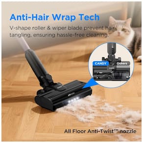 O Candy HF1 Plus utiliza motor brushless de alta eficiência com dois modos de sucção para remoção de pelos, detritos em carpetes, pisos rígidos, azulejos e estofados. Autonomia de 45 minutos por carga suporta limpeza contínua, com bateria removível para recarga independente e estrutura 2-em-1 que converte para portátil em segundos. Escova V anti-emaranhado previne acúmulo de fios, com rotação de 270° e inclinação plana de 180° para acesso sob móveis e cantos.