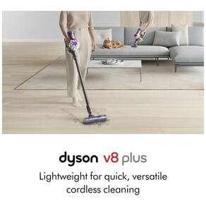 O aspirador sem fio Dyson V8 Plus oferece sucção de 115 AW com motor de 1400 W, projetado para limpeza de pisos duros e carpetes em ambientes internos. Inclui cabeça Motorbar para aspiração em todos os tipos de piso e desengate de cabelos longos e de pets durante a limpeza. Converte-se em aspirador portátil para escadas, estofados e carros, com autonomia de até 40 minutos em modo padrão e 5 minutos em modo Max. Dois modos de potência atendem tarefas cotidianas e limpezas intensivas, com bateria de íons de lítio e filtro HEPA para captura de partículas.