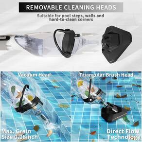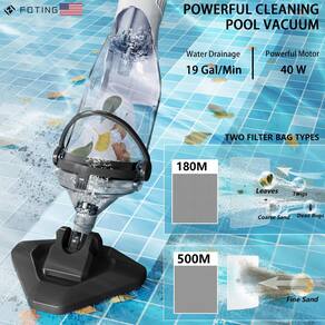 Descubra um aspirador portátil de piscina, um poderoso limpador de 40 W com uma taxa de fluxo máxima de 40 litros por minuto, perfeito para coletar rapidamente detritos como folhas, sujeira e areia (não para algas). Com cabeças de escova removíveis para fácil instalação e remoção, limpa com precisão escadas, cantos e áreas difíceis de alcançar. Com um mastro telescópico de alumínio estendido (91-222 cm), aproveite a limpeza sem fio dos pontos mais distantes. A operação é simples: fixe, ligue, submerja e limpe. A tela de filtro removível e a montagem sem ferramentas tornam a manutenção sem complicações. Inclui 4 bolsos de filtro, um cabo USB e um poste telescópico. 5 baterias recarregáveis de 2000 mAh oferecem 60 minutos de limpeza e recarga em apenas 1,5 hora. Apoiado por 100% testes do fabricante e uma garantia de três anos, o aspirador de piscina FOTING é sua escolha confiável para manutenção eficiente da piscina. - ?Sucção potente de 19 GPM?O aspirador de piscina portátil FOTING possui um motor potente de 40 W com uma taxa de fluxo de 19 galões/min, limpa piscinas sem esforço ou realiza limpeza pontual em segundos. Remove efetivamente detritos como bolotas, galhos, folhas, sujeira e areia (não é adequado para algas) - ?Cabeças removíveis?O aspirador de piscina sem fio FOTING possui cabeças de escova de fixação rápida para limpeza precisa de escadas, cantos e pontos difíceis de alcançar. Sua escova triangular limpa sem esforço piscinas, spas, banheiras de hidromassagem e muito mais - ?Pólo telescópico estendido?O aspirador de hidromassagem oferece 2 métodos de limpeza (mastro portátil ou telescópico) com um interior ondulado reforçado e poste de alumínio ajustável (91 a 222 cm), alcançando espaços apertados sem esforço através do design sem fio - Fácil operação e manutenção: o aspirador de piscina FOTING funciona simplesmente: prenda a uma alça, atire, submerja a tomada e limpe (temperatura máxima da água 35 °C). Possui um conjunto sem ferramentas, tela de filtro removível e inclui 4 bolsos de filtro, cabo USB, poste de alumínio telescópico e embalagem colorida - ?Tempo de funcionamento de 60 minutos e carregamento rápido?O aspirador de piscina sem fio FOTING proporciona tempo de funcionamento de 60 minutos com 5 pilhas de 2000 mAh e recarga rápida de 1,5 hora, garantindo uma limpeza ininterrupta. 100% testado pelo fabricante. Serviço pós-venda de três anos, a tempo se houver algum problema