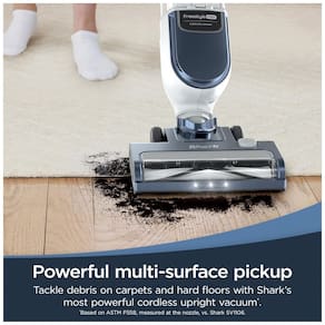 O aspirador vertical sem fio Shark Freestyle Max SV2002 oferece dois níveis de velocidade no rolo de escova para limpeza em carpetes e pisos duros, com copo de pó de grande capacidade e base de recarga integrada. Projetado para uso interno em limpezas rápidas e cotidianas, proporciona mobilidade sem cabos com autonomia de 20 minutos e peso leve para manobras em espaços confinados. Estrutura em material plástico Nordic Blue, formato upright portátil com dimensões compactas. Tecnologias incluem filtro de espuma para manutenção de fluxo de ar e faróis LED para iluminação de áreas. Design facilita esvaziamento sem contato com resíduos e reduz obstruções. Funcionalidades abrangem 2 níveis de potência, rotação swivel para cantos e dock de carregamento com economia de espaço. Compatível com pisos internos, carpetes e pisos duros. Cuidados envolvem recarga na base após 20 minutos de uso, limpeza do filtro de espuma e armazenamento compacto. Evite uso externo ou em superfícies molhadas.