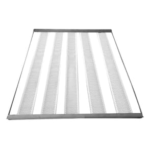 Características Técnicas: Esteiras de tiras de alumínio perfurado Material leve e de excelente qualidade Alta resistência à corrosão e infinitamente reciclável Específica para pães de sal Estrutura do arco em aço carbono (ferro) 5 tiras de 7cm em alumínio Sem engate