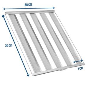 Características Técnicas: Fabricada em alumínio de 0,5mm Possui 5 tiras, com espaçamento de 7cm Esteiras de tiras de alumínio perfurada