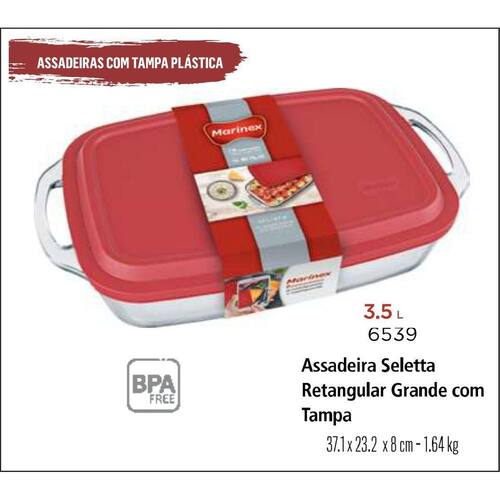 Não perca mais tempo e adquira agora mesmo a Assadeira com Alça e Tampa Retangular 3,5Lts Grande Marinex. Garanta praticidade e sofisticação na hora de preparar suas refeições!