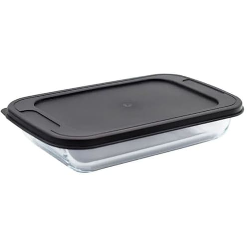 Assadeira de Vidro Retangular com Tampa Cinza 1 Litro - Em Casa Tem