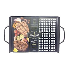 Assadeira e Bandeja para Grelhar em Churrasqueira Prana - Com a Grelha Antiaderente Prana 28 x 44 cm você irá preparar maravilhosas carnes e legumes em sua churrasqueira - Excelente para grelhar berinjelas, fatias de batatas, aspargos, assim como carnes em postas, pãezinhos de alho, etc - Revestimento antiaderente especial para altas temperaturas: os alimentos não grudam e a limpeza é muito mais fácil - Praticidade e design juntos em sua casa ao fazer seu churrasco com a Prana Uso: Não use facas, garfos ou qualquer metal pontiagudo para mexer o alimento. Utilize preferencialmente espátula de silicone, ou de materiais macios, como nylon, madeira e etc. Sempre use luvas protetoras para pegar a assadeira na churrasqueira. Não utilize este produto no fogão. Limpeza: Use uma esponja macia e nenhum tipo de abrasivo, esponjas grossas ou palha de aço. Modelo: GP81 Cor Preto Material: Aço revestido com anti- aderente