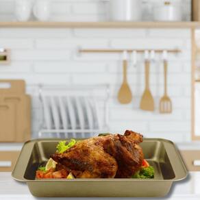 Assadeira Antiaderente Retangular Alta Feita Aço Carbono Premium Forma Com Revestimento Antiaderente De Qualidade Superior – 32 cm