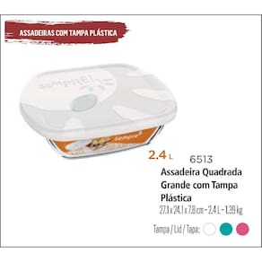 Assadeira Forma Com Tampa Quadrada 2,4lts Grande - Marinex