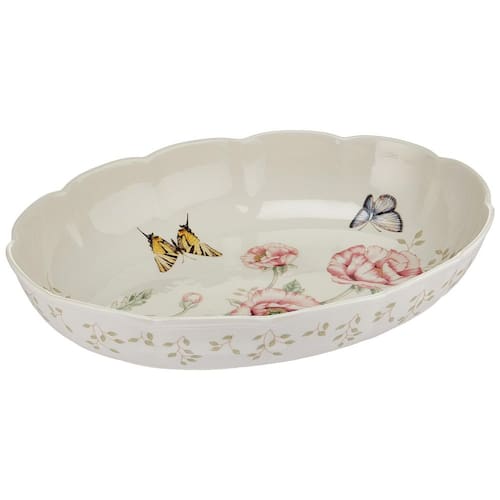 A Assadeira Oval Lenox Butterfly Meadow combina praticidade e charme em sua cozinha. Feita de porcelana branca de alta qualidade e resistente a lascas, esta assadeira é perfeita para preparar e servir suas receitas favoritas. Seu design encantador apresenta florais e borboletas em cores exuberantes, adornando cada peça recortada com elegância.
