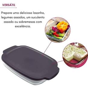 A assadeira com tampa é sinônimo de praticidade para qualquer amante de culinária produzida em vidro refratário, é ideal para assar e aquecer uma grande variedade de alimentos. Livre de bpa, pode ser utilizada sem tampa em fornos e micro-ondas pois resistente a temperaturas de -20c a 400c. Seja para preparar uma deliciosa lasanha, brownies, legumes assados, batatas rústicas, um suculento assado ou simplesmente aquecer refeições, a assadeira atende a todas as suas necessidades com excelência. Após o uso, a tampa plástica ainda garante a boa conservação dos alimentos; assegurando a preservação da refeição sem risco de cheiro residual. Além de tudo, é super fácil de limpar