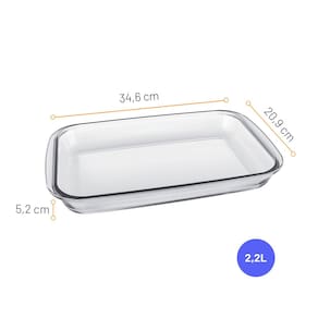 - Indicado Para: Assar; - Capacidade 2,2L; - Vidro cristalino temperado, é fácil de lavar e higiênica;