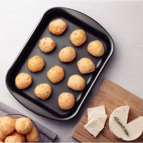 A assadeira retangular funda é ideal para preparar uma variedade de pratos no forno, desde carnes até vegetais. Com dimensões aproximadas de 33,5 cm de comprimento 24cm de largura e 6,1 cm de altura, esta assadeira feita de alumínio com revestimento antiaderente pro-flon, o que significa que você pode usar menos óleo, os alimentos não grudam e a limpeza é ais fácil. Além disso é livre de PFOA, um composto químico que é melhor evitar em utensílios de cozinha. As Alças laterais são um detalhe pratico que facilita o manuseio da assadeira, especialmente quando está quente e cheia. Seja para assar uma lasanha ou um assado suculento, essa assadeira é uma escolha versátil e confiável para sua cozinha.