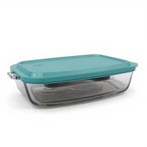 Assadeira Retangular de Vidro Cristalino Marinex Seletta com Tampa Azul 3,5L - Nadir