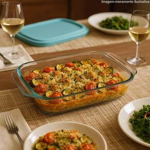 Características do Produto: Material do Produto: Vidro Cristalino Transparente Material da Tampa: Plástico Tampa Livre de BPA: Sim Indicação de Uso: Assar Capacidade: 3,5 L Marca: Marinex Linha: Seletta Tonalidade da Tampa: Azul