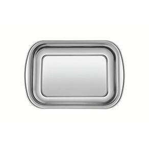 - Totalmente feita em aço inox, mantém suas características , preservando a beleza, a higiene e a durabilidade do material. - Acabamento em brilho. - Design moderno proporciona requinte ao compor a mesa. - Ideal para assar e servir. - Podem ser lavadas diariamente na máquina de lavar louças. Ean: 7891116020173