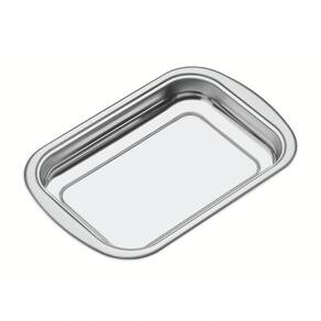 - Totalmente feita em aço inox, mantém suas características , preservando a beleza, a higiene e a durabilidade do material. - Acabamento em brilho. - Design moderno proporciona requinte ao compor a mesa. - Ideal para assar e servir. - Podem ser lavadas diariamente na máquina de lavar louças. Ean: 7891116186688
