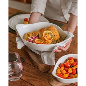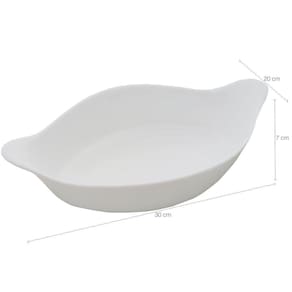 Assadeira Travessa Grande de Vidro Temperado 1,4L Opaline Marinex Branca #Travessa Marinex branca #Linha Opaline Marinex #Design e praticidade Garantia: 90 dias / Peso: 718g / Cor: Branco / Ref: 7891155072706 Dimensões externa superior: 30cm (C) x 20cm (L) x 7cm (A) Dimensões interna superior: 26cm (C) X 18cm (L) Dimensões externa inferior: 22cm (C) x 16cm (L) x 7cm (A) Dimensões interna inferior: 20cm (C) x 15cm (L) x 6cm (A) Dimensão alça: 6cm (C) X 2cm (L) Espessura: 0,5cm Formato: Oval. Capacidade: 1,4 litros Conteúdo: 01 Assadeira Grande. Limpeza e Cuidados: - Lavar com água e sabão neutro utilizando esponja macia, seguido de pano seco; - Não utilizar produtos químicos ou abrasivos na limpeza; - Vai a lava-louças. Detalhes do Produto: - Não utilizar diretamente sobre a chama, aquecedor elétrico, chapa ou grelha; - Pode ser levado ao forno com temperatura máxima de +300°C; - Pode ser levado ao freezer com temperatura mínima de -20°C; - Pode ser levado ao micro-ondas por até 10 minutos; - Suporta choque térmico de até 180°C; - Produto não acompanha tampa; - Produto livre de BPA. Material: - Vidro Temperado: Alta resistência ao calor e a impactos. Não pega cheiro e não mancha. Atóxico, pode entrar em contato com alimentos. A travessa Marinex Opaline é produzida em vidro temperado branco, e serve desde o preparo inicial até o momento de servir. A travessa oval branca possui capacidade para 1,4 litros sendo ideal para servir suas receitas favoritas para sua família e amigos. A travessa branca Marinex dispõe de alças ergonômicas, oferecendo praticidade no momento de servir. Esta travessa branca grande é ideal para uso em forno convencional, micro-ondas, freezer, geladeira e lava-louça.